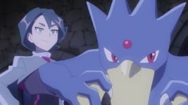 柯妮亞和吉爾在伽勒爾礦山裡再次和莉可、羅伊碰面,柯妮亞派出哥達鴨對戰莉可的新葉喵。六英雄之一的伽勒爾火焰鳥突然出現,哥達鴨和吉爾的鑽角犀獸都被瞬間擊倒,無奈之下柯妮亞只得將它收回精靈球中,和吉爾一起撤離。 |