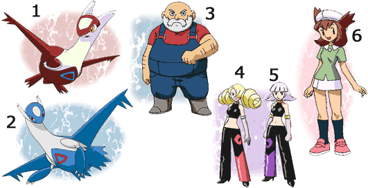 1.拉帝亞斯:是拉帝歐斯的妹妹,與哥哥一起守護著奧多馬雷的秘寶「心之水滴」。會變身成卡儂的樣子,喜歡跟小智玩。外表溫柔可愛,但內心十分堅強。(無限寶可夢 1.4m / 40.0kg)