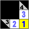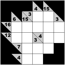 數謎又稱加法迷宮,所以就跟加法有關啦!只要小學一年級程度的加法,規則也很簡單: 1. 直行加起來要等於上方灰底數字,橫列則得等於左方灰底數字 2. 沒有零 3. 灰底字不能由重複的數字相加(亦即行或列不准有重複的數字) 不過在下圖中,1被兩個灰底字隔開所以是可行的喔 ![]() 那麼教你一點小撇步吧!3只能是1和2的相加,4只能是1和3相加,但順序得自己判斷。 所以看看下圖黃底部分,兩者都有共享到的數字是什麼?對了,就是1! 所以填入1,而剩下的兩格就都會填了吧。 多多想想數字的組合吧,像7只能是1、2、4相加,不能是2、2、3等等。哈~哈哈哈! ![]() |