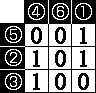 看右邊的例子吧!直看橫看,第1名要最大數,最後一名要最小數 那右邊第1名得到110,第2名是101,第3名是100, 第4名是011,第5名是001,第6名得到000,符合條件 不要以為最大數就一定要全部排1,最小數一定全部是0,未必是如此 你能趁方塊機器人顯示數字前更早推理出0、1的排列嗎?哈~哈哈哈! |