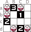 鐵旋先生趕緊叫方塊機器人顯示出頑皮彈的可能位置,數字代表「其周圍八格中有幾顆頑皮彈」