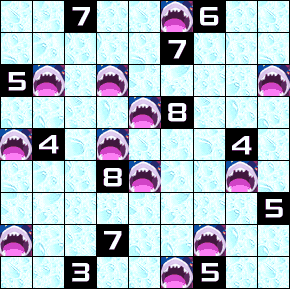 最後的任務只要讓各個餵食台都能照數字各餵到一隻巨牙鯊,而且所有的水路格都有被經過一次。加油吧!