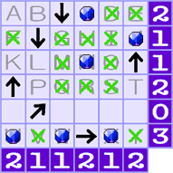 右圖:最後P和T也有鑽石(橫列顯示2),把周圍全打叉後就知道最後一顆鑽石藏在A格啦。一共挖出9顆!