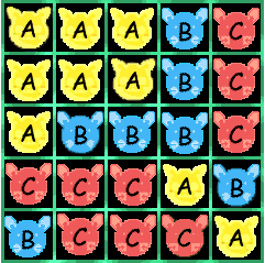 如果是A的話,那麼最左直行都得要全A才能連在一起,那就沒有位置擺其他的了。如果是C的話最下橫列也得要擺4個C,沒有B的容身處。所以左下角那格只能是B