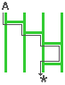 七隻寶可夢走過來祝賀大家聖誕和新年快樂,並且向鐵旋先生要禮物囉~ 為了增加樂趣,鐵旋先生決定採用「梯子籤」的方式來決定禮物。不知道什麼叫梯子籤嗎? 拿右圖舉例,有幾位就畫幾條直線,而在兩條直線中間可任意畫上橫槓。畫完後照簡單的規則走:『直線往下,一遇到橫槓就要橫走過去』,所以A往下走到最後就會到標示*的地方。 橫槓的數量有機會改變最後結果,所以當作抽籤的方式非常適合喔! 不過這關鐵旋先生要給你的挑戰是…… |