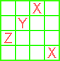 為了要保持特色與美觀,請你在填滿磁磚時遵守這兩項要求: (1)每行每列都要出現三種裝飾(如例題不能有ZZZX,這樣沒有Y) (2)每行每列的同種裝飾都一定要擺在一起,不能分離(如例題不能有YXZX,這樣X沒有在一起) 只要遵守以上的要求,每種裝飾各擺幾個就不限制了。那先來用簡單的例題來熟悉操作吧! 在例題裝飾的X上連點兩下滑鼠就會依序切換成Y、Z、然後回到X,而你覺得切換好後就拖移進例題 給你第一步提示:左上角只能擺什麼啊?那麼做完對照答案(在本網頁某處)後再來拼正式關卡吧,哈~哈哈哈! (例題→) ![]() ![]() ![]() ![]() ![]() ![]() ![]() ![]() ![]() ![]() ![]() ![]() ![]() |