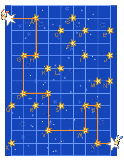 另外因為不能走斜線,要是發現一顆星星的上下左右沒有距離三格內的鄰居就表示走錯路啦,哈~哈哈哈!