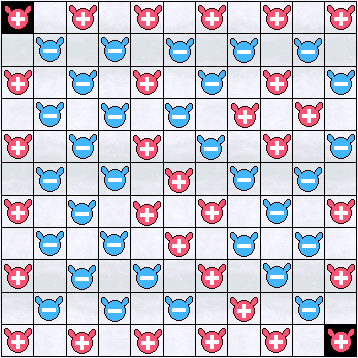 嗚哇!!冰死了啦!我在幫你們鋪設好玩的遊戲,你們這些小傢伙真是不知好歹喔…… 來,從左上角的起點開始,只准斜跳,要「正負正負正負…」這樣跳到右下角的終點,跳過的不重複 非常簡單的活動,又能在寒冷中鍛鍊身體的啦。那你們就想辦法跳到終點吧,哈~哈哈哈! |