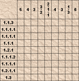 哎呀不是啦!這是我以前的學妹,她跟我一樣喜歡製作機關與出難題,所以這算是給我的挑戰帖啦。 那張紙的背面如下,是要根據數字的提示,把某些空格塗黑,就會浮現出要我在哪號道路見面的字樣。 第一個橫列提示「1.1.3」,代表該橫列有1格要塗黑、1格要塗黑、3格要塗黑,但中間至少要空開來。 所以像底下的塗黑法都符合「1.1.3」這條件: ![]() 你可以善用X記號來代表「不能塗黑」的格,若不確定而想試誤的話可以改塗成藍的。 那請你解出來,看看我學妹要約我到幾號道路見面吧,哈~哈哈哈! (正好我之前也用同樣的方式考過她,不懂怎麼下手的就到本頁最底下看解題技巧) |