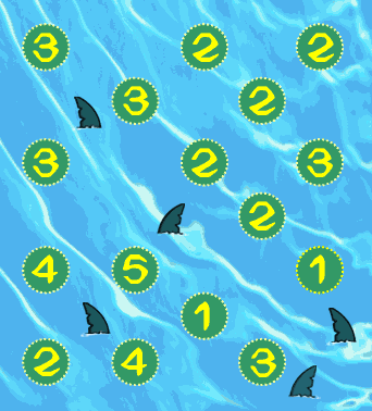 Bui!浮在海上的不是最搗蛋的阿噗和阿麥嗎?乾脆就放給巨牙鯊群去「教訓」他們…… 不行!身為師尊的我既然剛好在這附近,那還是得去搭救他們啦,可是這麼多血盆大口…Bui… 這片海域非常特殊,我只能從起點(4)開始水平或垂直游動,而數字代表我下次要行進的格數 也就是從起點開始,我可以往右游 4 格到「3」,或往下游 4 格到「2」這兩種選擇 假如我游出藍框海域的範圍,或是剛好停在鯊口格的話,我就會被咕嚕吞下肚……Bui!!(狂抖) 請你幫助我看看要怎麼游,才能順利到阿噗阿麥那格去救他們吧。(例題示範在底下) |