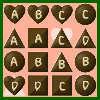 就可以知道要交換的兩顆巧克力是如下圖所示,愛心D和三角C囉~