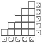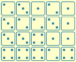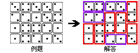 哈~哈哈哈!走路要注意才不會滑一跤嘛~。骨牌是由兩個骰子點數組成,像這樣: ![]() 我現在有「1-1」「1-2」「1-3」「1-4」「2-2」「2-3」「2-4」「3-3」「3-4」「4-4」這十張骨牌 而把它們縱橫隨便擺放成5x4的長方形,但是我只讓你看最後結果,你必須推理出各個骨牌的擺法 ![]() 提示:可從「相同點數的牌一定得這樣擺」著手,並善用檢查表以防重複(如1-4 和 4-1是同一張牌)。 |