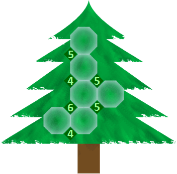 哎呀!這可是我特別設計的聖誕樹挑戰呢。 樹上有六個透明白色區域,各區能擺1~3個聖誕燈。 綠色數字代表「相鄰區域的燈數總和」。那你想辦法符合數字條件,加油擺擺看吧!哈~哈哈哈! |