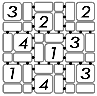 :這關跟數獨一樣,在各個空格中填入1~4的數字,讓每區塊(一共有9區)都出現一次1~4。