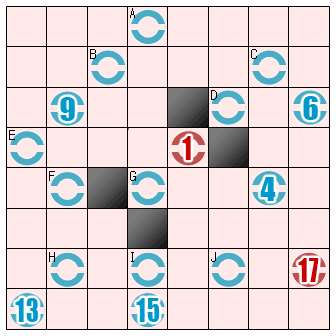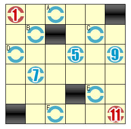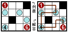 哎呀,是真的不知道還是裝蒜啊?總之趕快看這一彈的關卡說明吧! 規則很簡單:從起點1到終點(都是紅色),你必須「一筆畫」經過所有的藍色圓圈! 有些藍色圓圈中有數字,譬如4,代表從起點開始該圓圈必須是第4個經過的。 每個空格不能重複走過,也有一些空格完全不會經過。黑格不能通過。看底下例題和解答吧: ![]() |