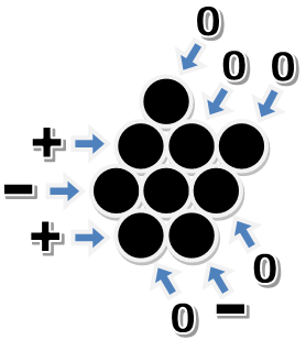 喔,這是我的迷你發電機組,不過要符合底下條件才能使用啦: 「將三個正電和三個負電放入黑圈中,滿足周圍的標示條件。0代表該直線中 正電數和負電數相同(或都是空白),+代表該直線中 正電比較多(或都是正電),-代表該直線中 負電比較多(或都是負電)。」 那你來試試看吧,哈~哈哈哈! |