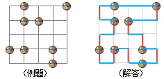 就是這股鬥志!那來看本次最後的挑戰吧: 「整個盤面要形成一個不分岔的封閉路線,而每走三個線段需通過一顆寶貝球」 看看底下的例題以及解答,是不是都符合「一個封閉路線、沒有分岔、每三個線段通過一顆寶貝球」呢? 那你加油吧,哈~哈哈哈! ![]() |