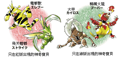●此時期的傳說寶可夢(急凍鳥、閃電鳥、火焰鳥、超夢)及化石(菊石獸、化石盔),每一種皆只能取得一隻,因此無論是傳說寶可夢及化石都相當的貴重,務必要好好保存。