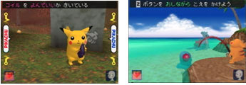 越對皮卡丘打招呼與稱讚鼓勵、越和皮卡丘建立友情的話,就可以到處出去踏青,做更多的活動與遇見其他野生的寶可夢們。 在草原裡散散步、在海邊釣魚、在森林裡體驗採食料的樂趣,你和皮卡丘的感情一定會日益增加的喔! | ![]() |