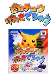 原名:ピカチュウげんきでちゅう 中文:皮卡丘你好嗎 開發公司:股份有限公司UMBRELLA 發售公司:任天堂股份公司 發售日期:1998年12月12日 參考售價:9800日圓未稅 對應主機:Nintendo 64(N64) 同捆機器:N64 VRS(聲音辨識系統) |