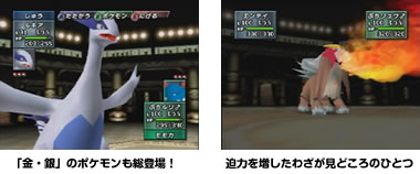 以驚人的3D立體化(當然是以當年水準而言)在玩家面前呈現。另外,購買64GB擴充包的話,還可以用自己在GB裡所培養的寶可夢到大螢幕上來享受3D化的戰鬥喔!^^