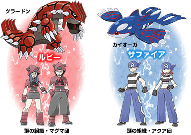 在「寶可夢紅寶石版」中,主人公要對抗的是企圖使用遠古寶可夢固拉多(グラードン)的力量來使陸地面積擴大的火岩隊、而在「寶可夢藍寶石版」中,主人公要對抗的是企圖使用遠古寶可夢蓋歐卡(カイオーガ)的力量來使海洋面積擴大,