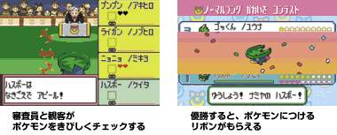 ●「寶可夢紅寶石/藍寶石版」和兩年後出的「寶可夢綠寶石版」都有寶可夢華麗大賽可以參加,在華麗大賽中除了審查寶可夢的「麗質」外,更要講求選美專用的配招,