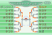 其次,介紹對戰巨蛋「バトルドーム」。這裡的對戰是採淘汰賽制,每一輪都會有16名訓練家參加,玩家可以看到所有其他訓練家使用的寶可夢及其鍛鍊的方向,每場戰鬥均由自己的三隻寶可夢中選出兩隻跟電腦訓練家交戰,也因為每場戰鬥都只能派兩隻上場,故必須將隊伍中兩兩寶可夢間的均衡性要盡量提高,而在每一輪中只要打倒四位敵人,就可以成功晉級下一輪。 由於兼具交戰人數少、上場寶可夢數少及知道敵人可能派上場的寶可夢,所以很多玩家都認為這裡是全BF中最簡單的一個設施(很容易就可以打到20輪以上XD),也因為難度簡單,每次打贏所得到的BP數也是非常少的~不過殺到20輪以後一次就可以領個10幾BP,還是很賺的^^。 ▲ |