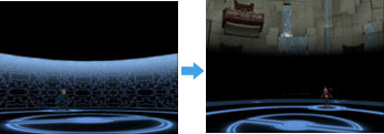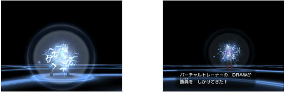 在e+室的神祕空間內,主角就可以開始和虛擬訓練家對戰了~不過畫面背景怎麼一片黑呢?