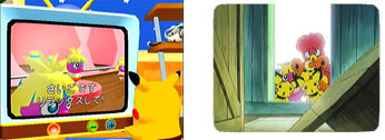 在這款遊戲中,你可以讓皮卡丘觀看各種節目,吸取知識與娛樂經驗,讓你和皮卡丘的感情越來越好。 頻道裡播出的節目有十幾種之多,像是可達鴨的新聞節目、圖圖犬的美術鑑賞、傑尼龜的電視購物、迷唇娃的有氧體操、甚至還有能拿獎金的問答節目等等(獎金可以花在購物方面)。 此外絕對不能錯過「我們是皮丘兄弟-派對喧鬧篇」這部只在頻道裡才看得到的特別篇動畫喔! | ![]() |