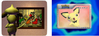 一項突破性的機能是「圖圖犬繪圖系統」,玩家可以將「皮丘兄弟」特別動畫的畫面擷取下來著色,還可以投稿到圖圖犬的美術節目裡獲得講評喔! 此外這遊戲中還有100多張「好友卡」可供蒐集,可以從野外寶可夢那邊、或是在購物節目中獲得。 有的好友卡有3D立體功能、有的還有該隻寶可夢的叫聲,把這些卡整理在你房間內的好友蒐藏夾裡面隨時拿來看看,享受自己的收藏成果吧! | ![]() |