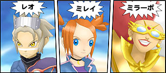 左:主人公,中:幫你判斷黑暗寶可夢的女性,右:犯罪組織的幹部--紅燒獅子頭(轟) |