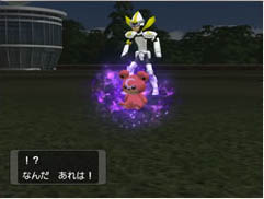 在此,筆者將會場的實際情況做個描述: 在FESTA會場中有個很大的攤位上面寫著「神奇寶貝XD」,然後有很多人在那裡排隊等著玩體驗版,等排到以後工作人員會指示我們要到哪一排去玩(因為那裡NGC放好幾排)。 基本上因為旁邊沒有工作人員在監控,所以有沒有抓到那隻黑暗金屬怪並非重點。我在進戰鬥之前是把所有能點選查看的都看過一次了。 當然如果想直接進戰鬥也是可以的,玩家在往前走幾步就會遇到反派,進入戰鬥之後主角會打開「靈氣搜尋器」確認敵方的黑暗神奇寶貝,於是發現在敵方的兩隻神奇寶貝:天秤偶和金屬怪中, 有一隻是黑暗神奇寶貝,而玩家需要奪取的就是黑暗金屬怪(天秤偶是正常的,不能奪取>口<),如果各位想要成功奪取的,可以照著底下給的建議來做: 1.黑魯加用咬下攻擊天秤偶,派拉斯特對金屬怪放磨菇孢子 2.黑魯加對金屬怪使出火花,派拉斯特對金屬怪用搔癢功 3.把道具欄中的「ハイパーボール」 (超高球)投出 4.沒有意外的話就奪取成功了! 然後此時我們就可以放下NGC的搖桿,出發去領贈品了 一號贈品是用來貼NGC的貼紙,XD款式 至於二號贈品就是傳說中的金屬怪了^^ |