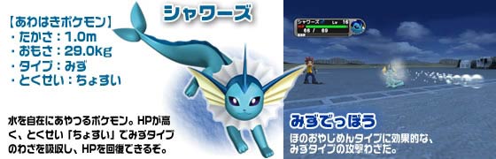 右圖介紹招式:『水槍』對火炎系和地面系相當有效