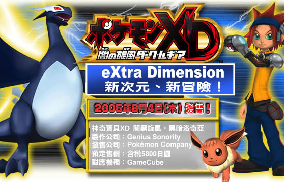神奇寶貝XD(新次元的簡稱)是承襲Colosseum寶石版競技場的另一GC新作。 這次的場景自然也跟競技場寶石版一樣,是在歐雷(オ ーレ)地區喔!只不過本次設定中事隔五年,以為已經平息的「黑暗神奇寶貝事件」居然又傳出再次重現的消息。 到底是怎麼回事呢?新的幕後陰謀主使者又是誰?你這位主角就要來解開這些嶄新的謎團!