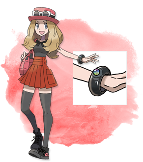 主角手上佩戴著超級手鐲,可以對特定的寶可夢進行超進化