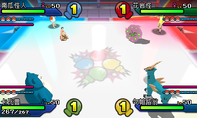 4位訓練家各選擇3隻寶可夢參加對戰,首先派出1隻寶可夢出戰。