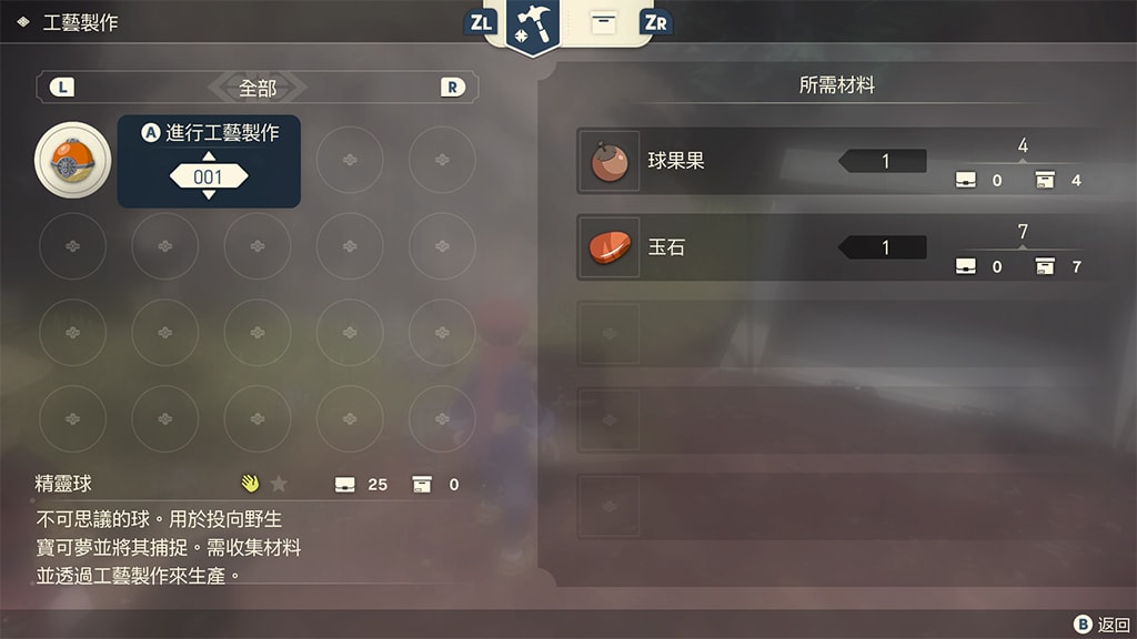 例如使用「球果果」、「玉石」進行工藝製作,就能夠做出「精靈球」!