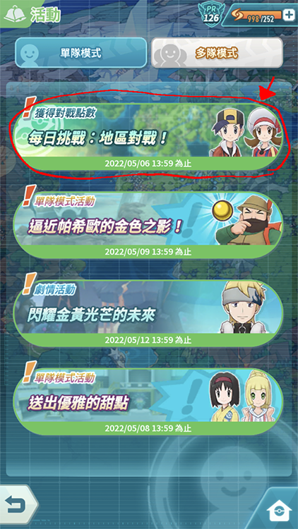 報酬有對戰點數與「地區」必中5★券,還有培育拍組所需要的素材