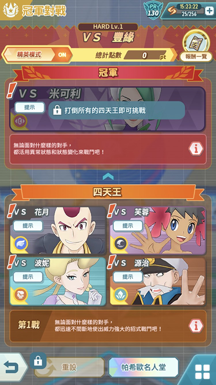 需先通過「NORMAL」難度的「VS 關都」才能挑戰「冠軍之路」和「HARD Lv.1」