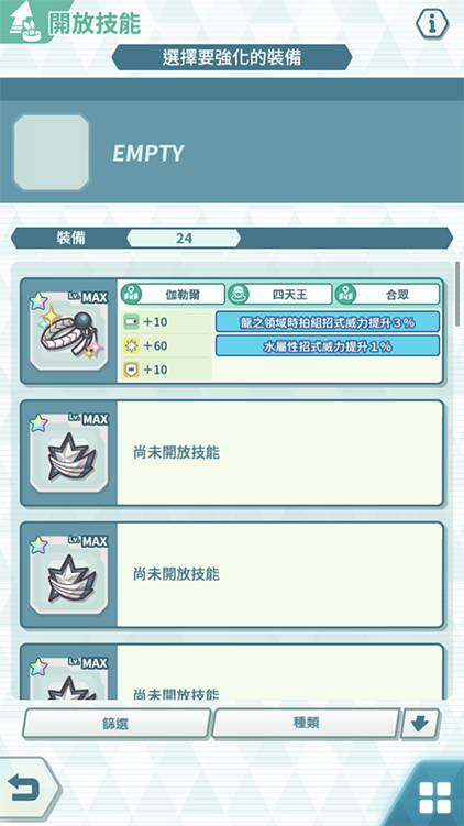 ※技能裝備&技能羽毛,相關說明※ 說明: ●不管「屬性裝備」或是「技能裝備」,都是分為三個,"手繩"、"領巾"、"胸針"。 過去大家所熟悉的被更改為「屬性裝備」,屬性裝備只有加拍組的能力值,依照裝備上說明的能力值......對應屬性 +滿的,非對應屬性則是 +一半。 ●而2023年10月開始,遊戲新增新機制,現在新的裝備稱為「技能裝備」,正常狀態下是沒有任何能力,必須透過技能羽毛去解鎖習得能力,打造屬於自己專用的裝備;用羽毛去解鎖一個技能裝備時,都會開啟「標籤」、「能力值」、「追加效果」。 ●每一個技能裝備當習得技能,「標籤」、「能力值」、「追加效果」都是三個 "插槽",再依照各自「」裡的三大能力菜單裡的項目, 機率性去學習到該能力,換句話說就是可能只會學到 一個標籤+一個能力值+一個追加效果,三大能力菜單裡的三個 "插槽" 開起的機率皆為 "33.3%"; 當非到爆,都沒有 (0個標籤插槽+0個能力值插槽+0個追加效果插槽),會強制100% 讓三大能力菜單裡各開一個插槽並學習到一個項目(也就是前三句所說的) ●此外要特別說一下,當使用「不變別針」鎖住一個能力時,再次使用羽毛換能力時,已經鎖住不變的能力就不會變,但第二個能力除了會重洗以外,也可能會不見喔。而且一個技能裝備可以使用的「不變別針」是......「標籤」、「追加效果」插槽中裡的各一項,無法同個分類的插槽重覆使用;也就是說一個技能裝備最多只能花兩個「不變別針」,還分別只能所各一項的「標籤」、「追加效果」。 ●技能裝備追加效果的啟動條件,只要隊伍拍組裡的標籤符合到裝備學習到的標籤,就可以啟動被附加的能力,如果沒有符合標籤,那 那個拍組就什麼能力都得不到。 ●三個技能裝備("手繩"、"領巾"、"胸針") 追加的能力值是會累計的,比如三個裝備都有HP+50,那總計會+150,其他能力依此類推;但一個技能裝備的標籤符合到隊伍裡標籤2~9個,追加能力值和效果都只會啟動一次,不會重複。 ●技能羽毛,總共分為9種顏色,分別為: 紅、粉紅、藍、綠、紫、白、黃、橘、彩色 ●9色技能羽毛,能得到的「標籤」都一樣是以下內容: 「18個屬性各1種、8個地區各1種」、「主角」、「勁敵」、「道館館主」、「四天王」、「冠軍」、「邪惡組織」、「給予考驗之人」、「對戰設施的強者」 ●9色技能羽毛,能得到能力值: 這個是去依照「手繩」、「領巾」、「胸針」去分能力的,去看羽毛說明就知道該裝備是什麼能力值的範圍,然後該項能力值則是它說明的隨機範圍 (比如 HP30~70,可能40,也可能60) ●9色技能羽毛,追加效果: 先說明,彩色羽毛是特殊羽毛,是官方已經配好必得能力的道具。 另外8種,目前只有橘色還沒有被設定追加效果,其他都有,請看圖片吧,被動效果超多,圖片很長,還請慢慢查略,請見諒。 |