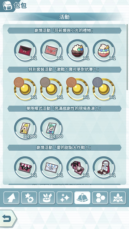 「任務」:跟最初遊戲畫面首頁左邊的任務選單捷徑是一樣的,就是完成活動任務後領取報酬