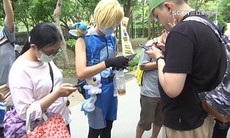 寶可夢玩家:「這是太陽月亮,就是一款遊戲訓練家的角色,在路邊會跟人家對戰的一個角色。」化身遊戲角色,寶可夢迷大集合,不只三五好友集結,還有爸媽帶小孩全都低頭瘋抓寶,把公園四處堵的滿滿滿。