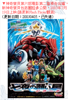 此外,pokemon2003.jp將在9月30日關站,預計11月將推出2004年的新版面與新電影介紹!