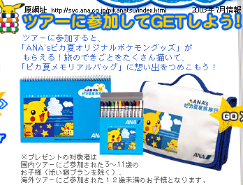 右圖:參加旅遊套裝方案,還可以得到ANA獨家的寶可夢商品!有畫冊、蠟筆和提包,讓你盡情的畫出旅行中快樂的點點滴滴!