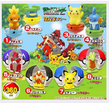 *站在陀螺上的火稚雞、蓮葉童子、皮卡丘和水躍魚預計從12/23發售