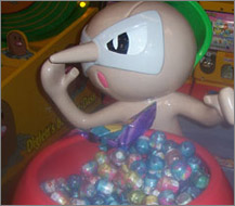 以下的寶貝球狀機器打開後按按鈕四處走動,就會遇到野生的PM。看到PM的瞬間把蓋子蓋起來,抓準時機甩球作出GET的動作就能收服到啦。當然,等級越高的PM越難控制收服。