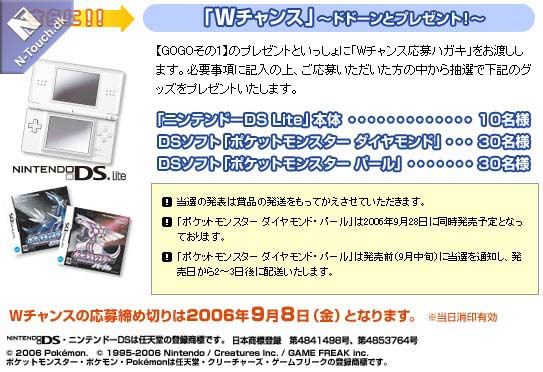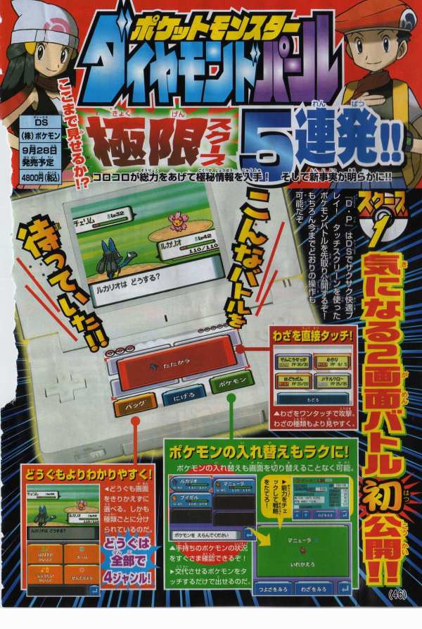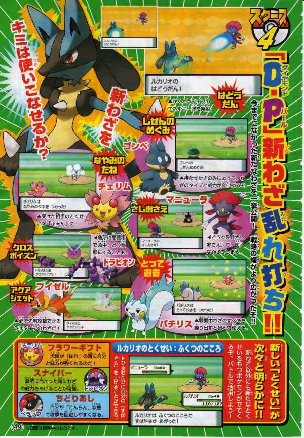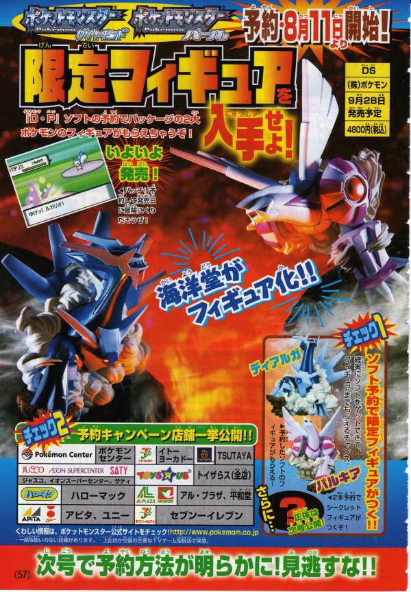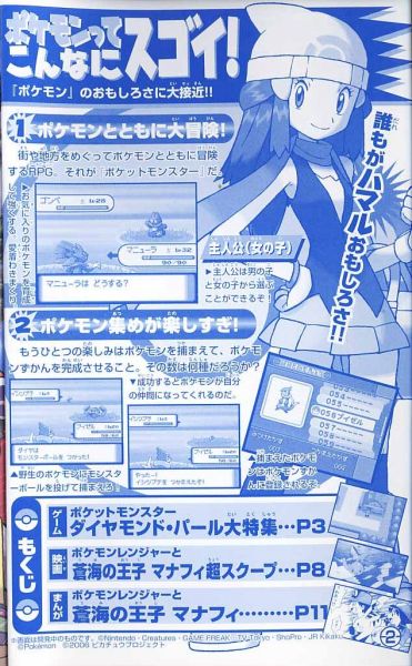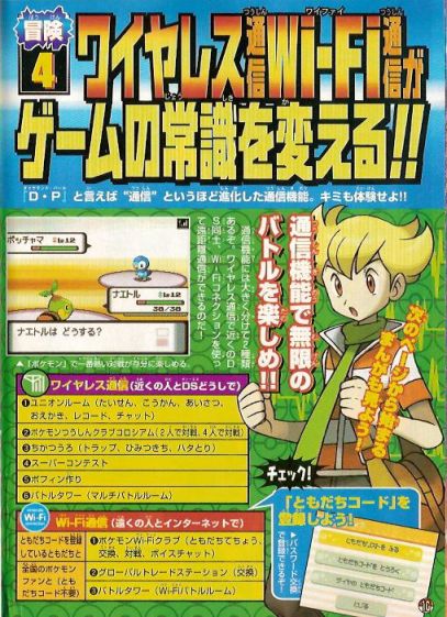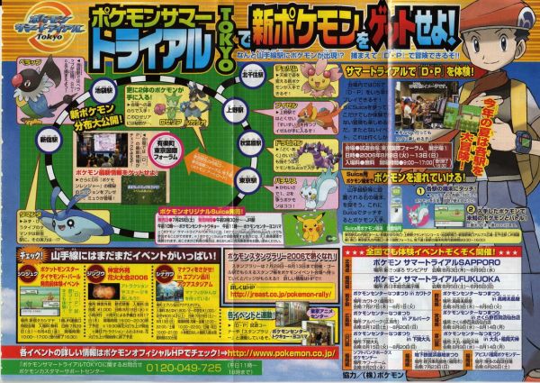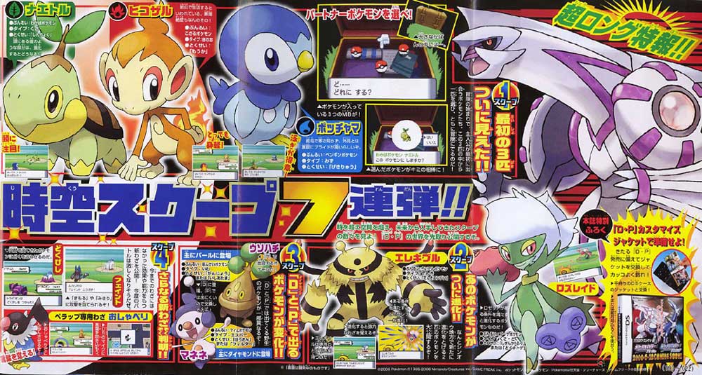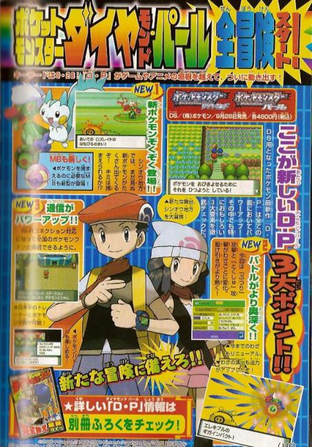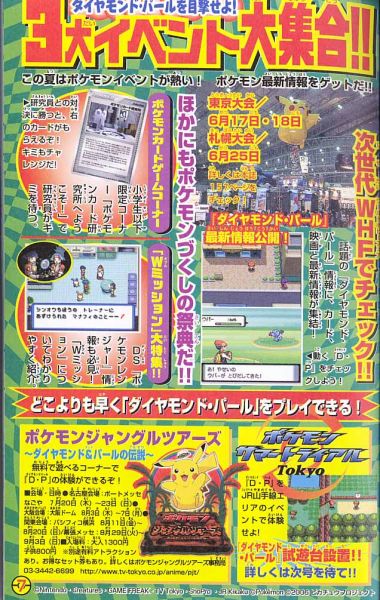 最後,在日本11月25起有「寶可夢鑽石珍珠 FESTA對戰慶2006」的活動,可以搶先體驗對戰革命的刺激玩點,帶鑽石珍珠去還會依版本分別送鴨嘴火龍的進化型(ブ ーバーン)與電擊獸的進化型(エレキブル)