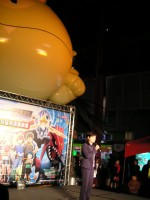 充氣中的喵喵氣球 | 首映舞台全景 | 舞台下的標題列 | 舞台燈光效果 |