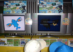 還有火熱的GBA「紅寶石、藍寶石」體驗試玩台,以及可以掃入遊戲中,擴充遊戲玩法的「e+卡」專區